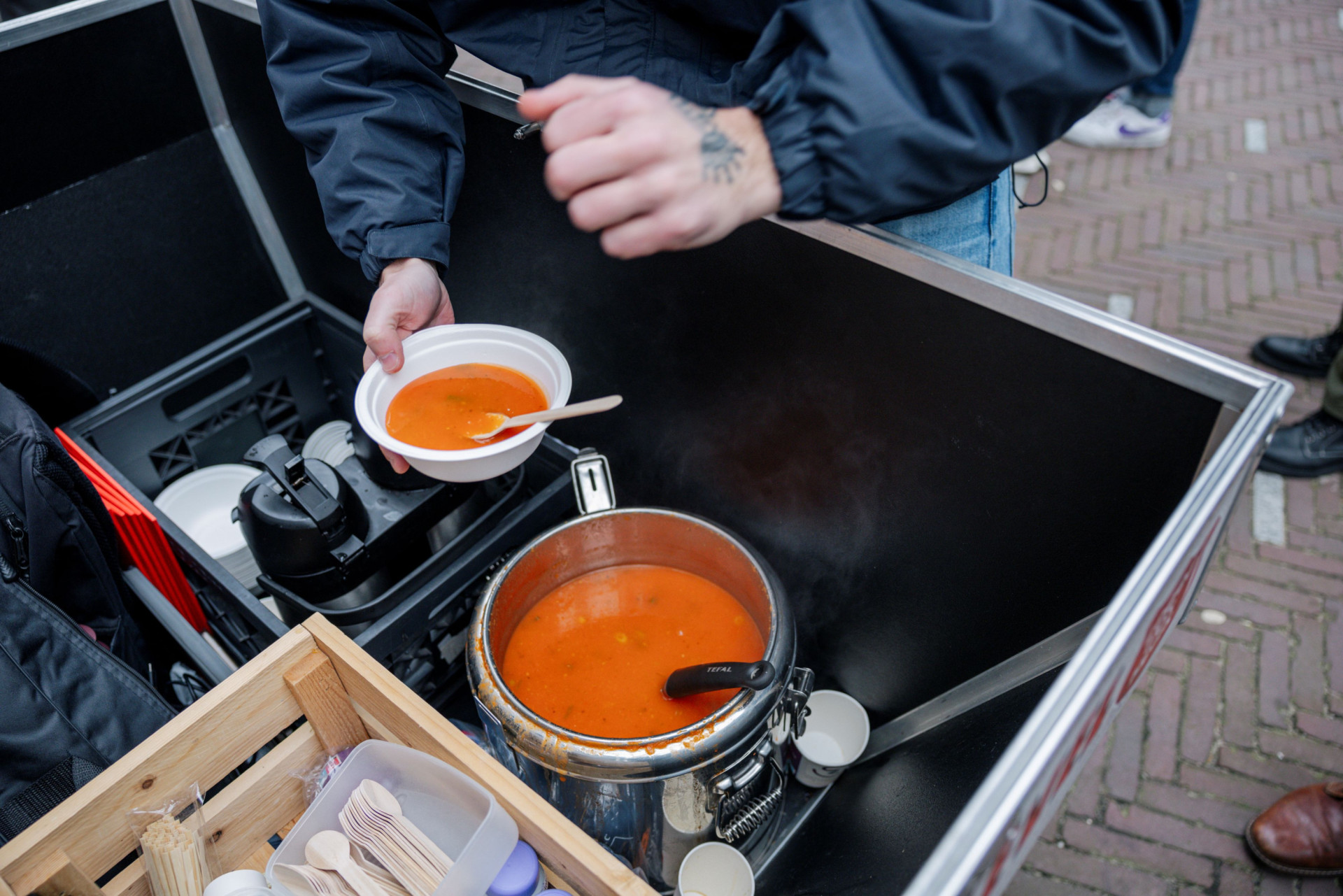 Met de actie ‘soep voor iedereen’ stond het Leger des Heils voor de hoofdingang van het Tweede Kamergebouw in Den Haag. Tijdens de schorsing van het debat kregen Kamerleden een warme kop soep aangeboden. Met deze actie wordt aandacht gevraagd voor de gevolgen van de voorgestelde wetgeving voor mensen zonder verblijfsrecht en hun helpers.