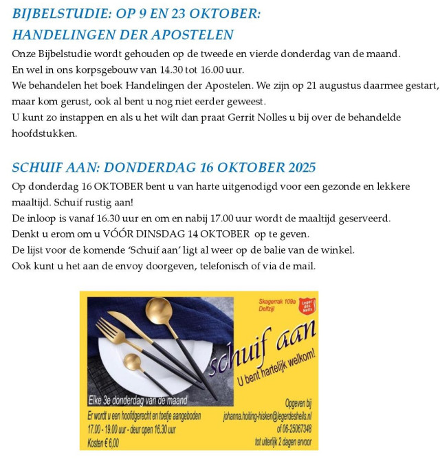 Wanneer U een NOOD heeft voor u zelf of voor een ander, belt u dan met het Leger des Heils Korps Delfzijl.