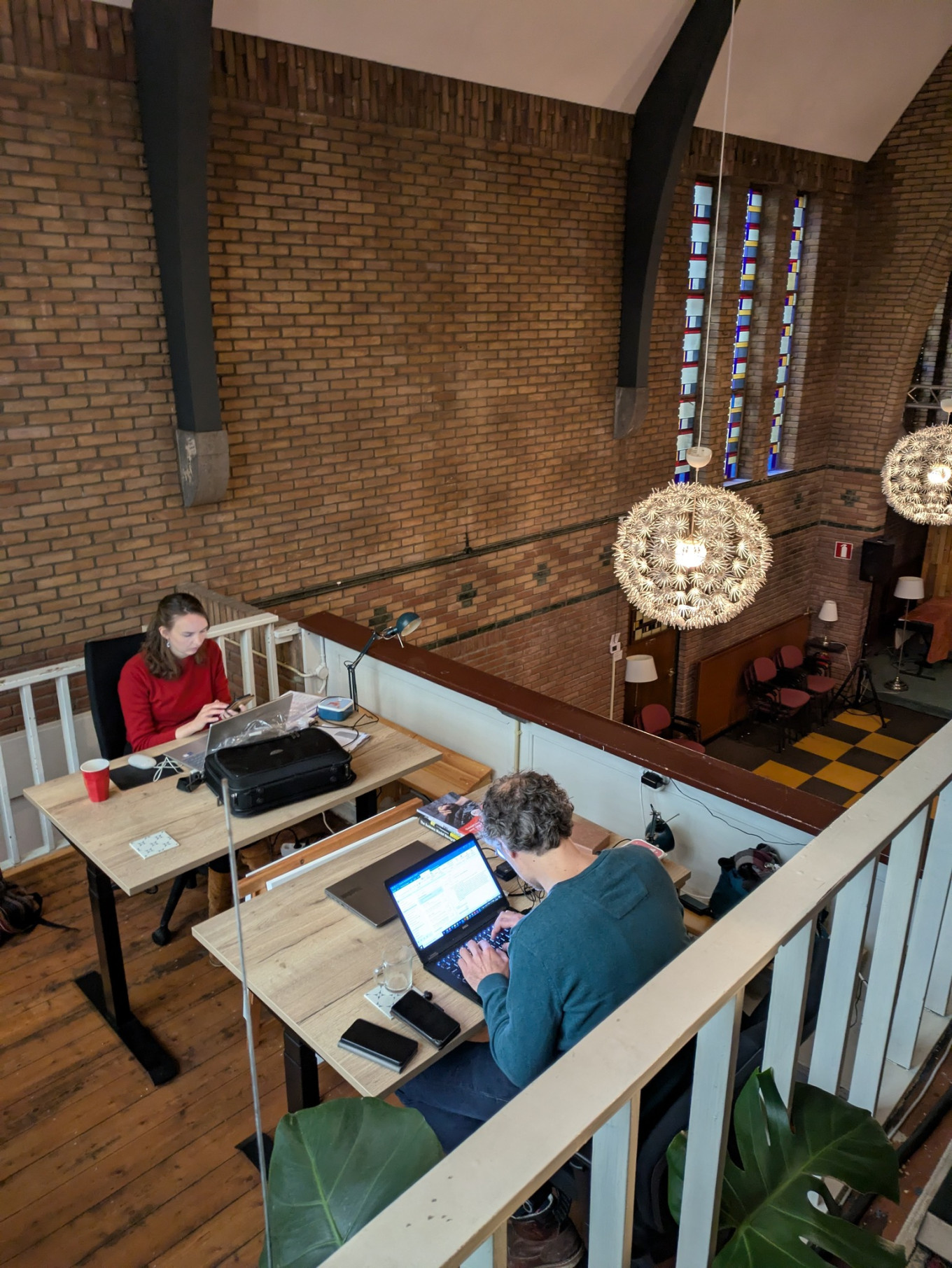 Boven in de kapel vind je de werkplekken, waar in alle rust en stilte gewerkt kan worden. Beneden is er juist ruimte voor ontmoeting: elke dag lunchen we samen om 12.30 uur en is er gelegenheid voor een praatje, een kop koffie of thee. Workspace Wageningen is meer dan alleen een werkplek. Het is een open community waar iedereen welkom is en waar werken en verbinden samenkomen.